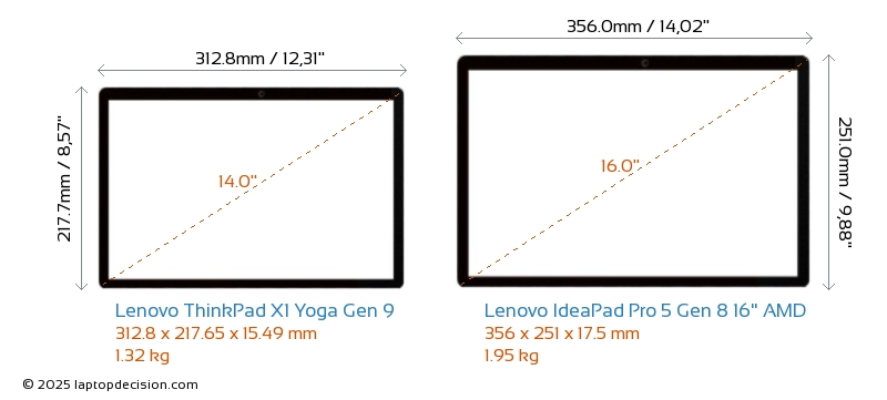 HDMIBoth ThinkPad X1 Yoga Gen 9 and IdeaPad Pro 5 Gen 8 16" AMD feature an HDMI port (1x HDMI 2.1) for connecting to external monitors.