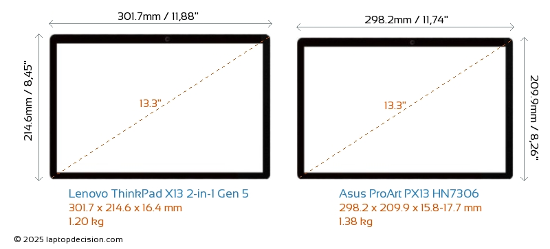 HDMIBoth ThinkPad X13 2-in-1 Gen 5 and ProArt PX13 HN7306 feature an HDMI port (1x HDMI 2.1) for connecting to external monitors.