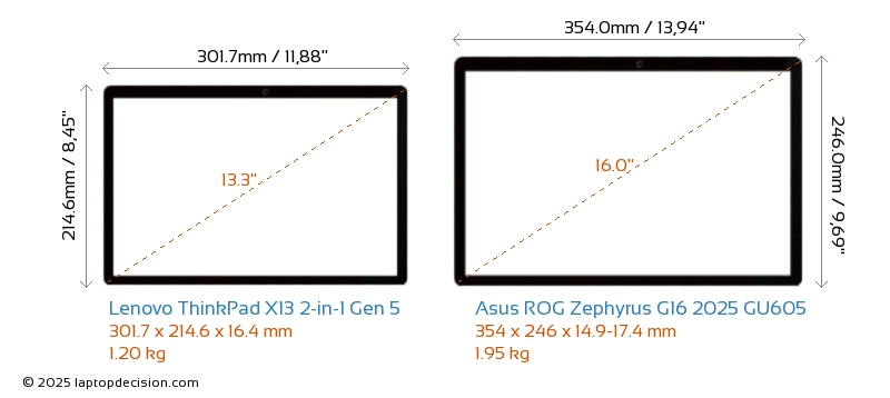 ThunderboltBoth ThinkPad X13 2-in-1 Gen 5 and ROG Zephyrus G16 2025 GU605 are equipped with Thunderbolt 4 ports.