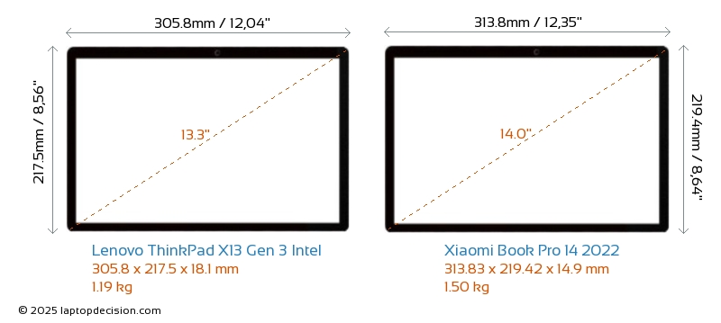 HDMI ThinkPad X13 Gen 3 Intel features an HDMI port (1x HDMI 2.0) for connecting to external monitors. Book Pro 14 2022 does not have an HDMI port.