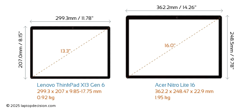 ThunderboltBoth ThinkPad X13 Gen 6 and Nitro Lite 16 are equipped with Thunderbolt 4 ports.