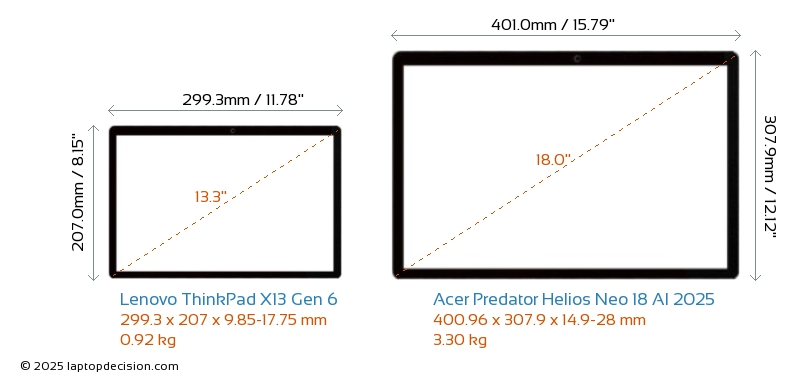 ThunderboltBoth ThinkPad X13 Gen 6 and Predator Helios Neo 18 AI 2025 are equipped with Thunderbolt 4 ports.