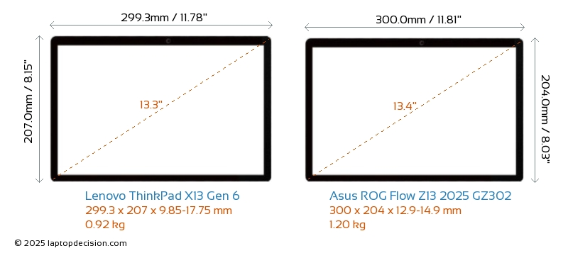 Audio JackBoth ThinkPad X13 Gen 6 and ROG Flow Z13 2025 GZ302 are equipped with a 3.5mm Audio Jack, providing seamless connection to headphones and speakers.
