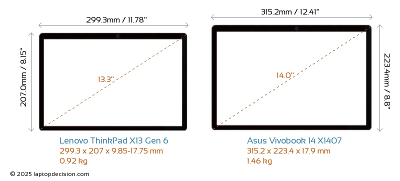 USBBoth ThinkPad X13 Gen 6 and Vivobook 14 X1407 feature 2x USB 3.2 USB-A ports.Both ThinkPad X13 Gen 6 and Vivobook 14 X1407 have USB Type-C ports. ThinkPad X13 Gen 6 has 2x USB 4.0 USB Type-C ports, while Vivobook 14 X1407 has 2x USB 3.2 USB Type-C ports.