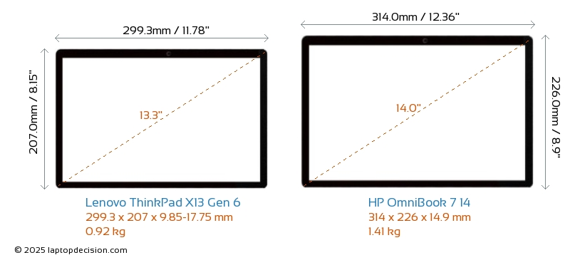 HDMIBoth ThinkPad X13 Gen 6 and OmniBook 7 14 feature an HDMI port (1x HDMI 2.1) for connecting to external monitors.