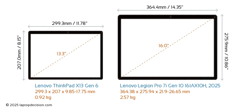 ThunderboltBoth ThinkPad X13 Gen 6 and Legion Pro 7i Gen 10 16IAX10H, 2025 are equipped with Thunderbolt 4 ports.