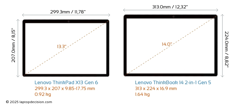 ThunderboltBoth ThinkPad X13 Gen 6 and ThinkBook 14 2-in-1 Gen 5 are equipped with Thunderbolt 4 ports.