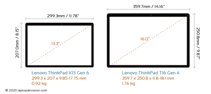 ThunderboltBoth ThinkPad X13 Gen 6 and ThinkPad T16 Gen 4 are equipped with Thunderbolt 4 ports.