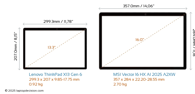 HDMIBoth ThinkPad X13 Gen 6 and Vector 16 HX AI 2025 A2XW feature an HDMI port (1x HDMI 2.1) for connecting to external monitors.