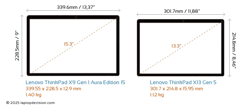 ThunderboltBoth ThinkPad X9 Gen 1 Aura Edition 15 and ThinkPad X13 Gen 5 are equipped with Thunderbolt 4 ports.
