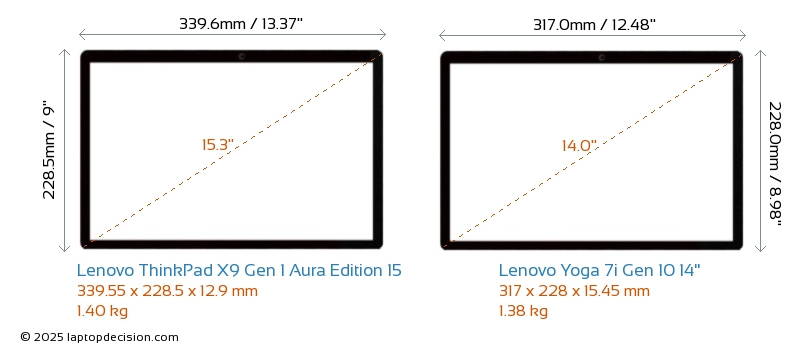 USBBoth ThinkPad X9 Gen 1 Aura Edition 15 and Yoga 7i Gen 10 14" feature 1x USB 3.2 USB-A ports.Both ThinkPad X9 Gen 1 Aura Edition 15 and Yoga 7i Gen 10 14" feature 2x USB 4.0 USB Type-C ports.