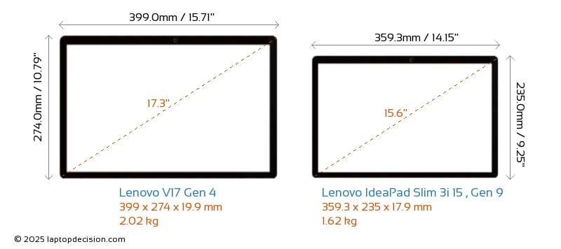 USBBoth V17 Gen 4 and IdeaPad Slim 3i 15 , Gen 9 feature 2x USB 3.2 USB-A ports.Both V17 Gen 4 and IdeaPad Slim 3i 15 , Gen 9 feature 1x USB 3.2 USB Type-C ports.