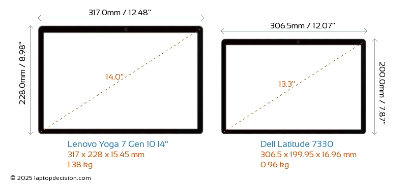 Audio JackBoth Yoga 7 Gen 10 14" and Latitude 7330 are equipped with a 3.5mm Audio Jack, providing seamless connection to headphones and speakers.