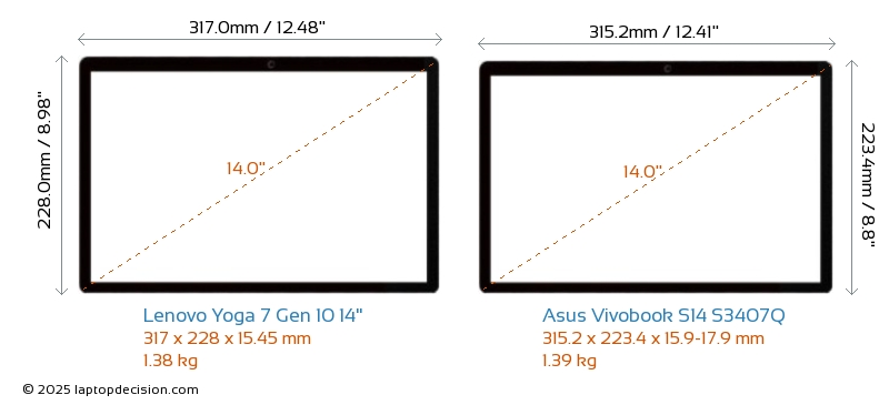 HDMIBoth Yoga 7 Gen 10 14" and Vivobook S14 S3407Q feature an HDMI port (1x HDMI 2.1) for connecting to external monitors.
