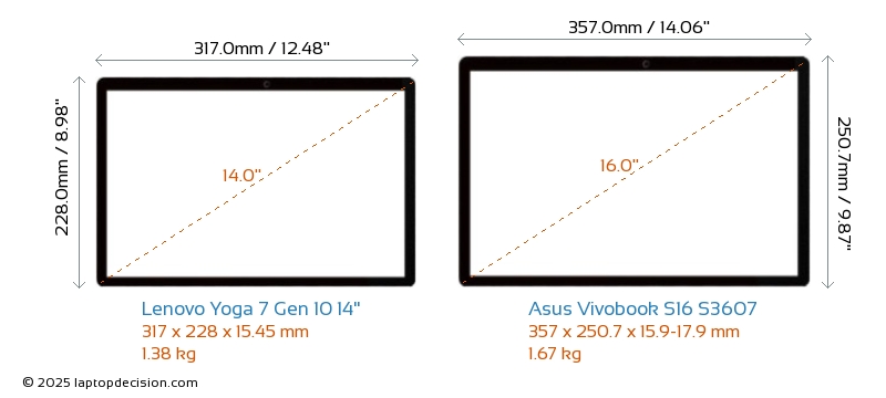 SD Card Reader Yoga 7 Gen 10 14" is equipped with an SD Card Reader for easy access to memory cards. Vivobook S16 S3607 does not have an SD Card Reader.