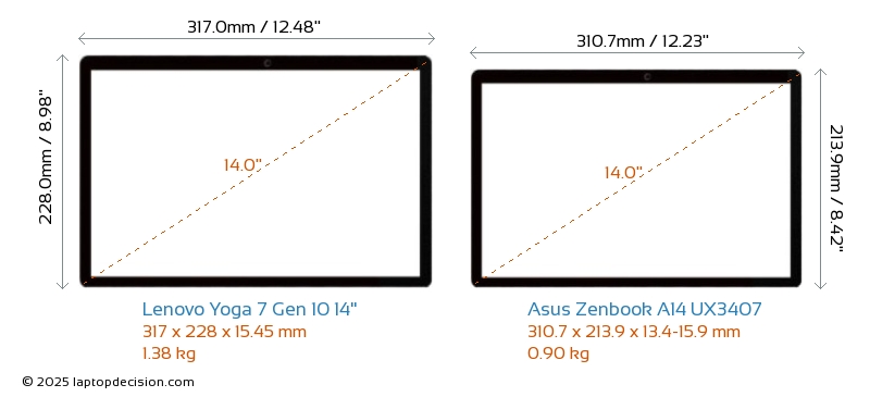 USBBoth Yoga 7 Gen 10 14" and Zenbook A14 UX3407 feature 1x USB 3.2 USB-A ports.Both Yoga 7 Gen 10 14" and Zenbook A14 UX3407 feature 2x USB 4.0 USB Type-C ports.