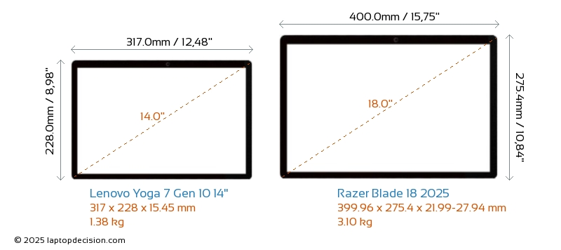 HDMIBoth Yoga 7 Gen 10 14" and Blade 18 2025 feature an HDMI port (1x HDMI 2.1) for connecting to external monitors.