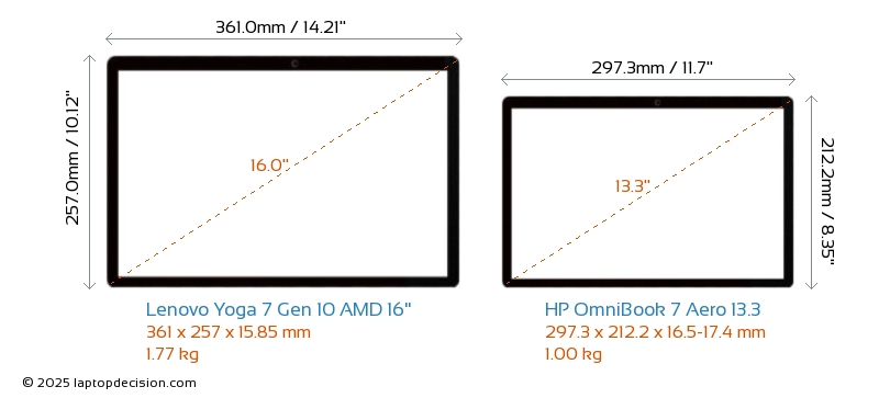 SD Card Reader Yoga 7 Gen 10 AMD 16" is equipped with an SD Card Reader for easy access to memory cards. OmniBook 7 Aero 13.3 does not have an SD Card Reader.