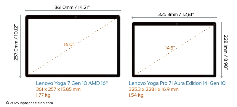 HDMIBoth Yoga 7 Gen 10 AMD 16" and Yoga Pro 7i Aura Edition 14 Gen 10 feature an HDMI port. Yoga 7 Gen 10 AMD 16" offers 1x HDMI 1.4, while Yoga Pro 7i Aura Edition 14 Gen 10 offers 1x HDMI 2.1.