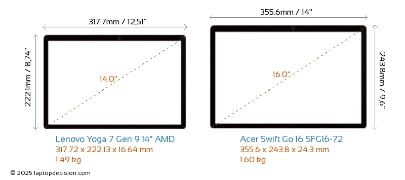 ThunderboltBoth Yoga 7 Gen 9 14" AMD and Swift Go 16 SFG16-72 are equipped with Thunderbolt 4 ports.