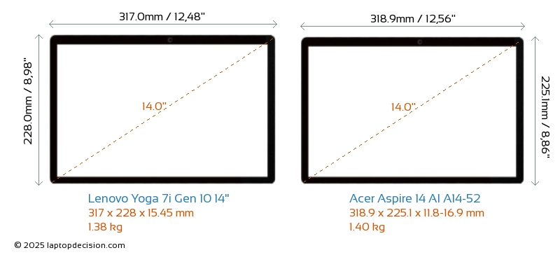 SD Card Reader Yoga 7i Gen 10 14" is equipped with an SD Card Reader for easy access to memory cards. Aspire 14 AI A14-52 does not have an SD Card Reader.