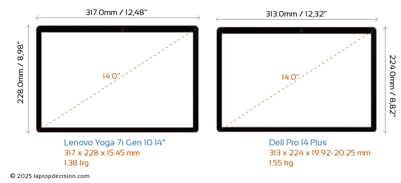 SD Card Reader Yoga 7i Gen 10 14" is equipped with an SD Card Reader for easy access to memory cards. Pro 14 Plus does not have an SD Card Reader.
