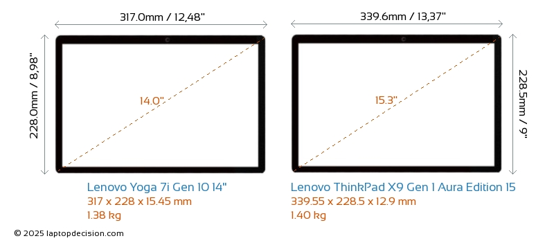 USBBoth Yoga 7i Gen 10 14" and ThinkPad X9 Gen 1 Aura Edition 15 feature 1x USB 3.2 USB-A ports.Both Yoga 7i Gen 10 14" and ThinkPad X9 Gen 1 Aura Edition 15 feature 2x USB 4.0 USB Type-C ports.