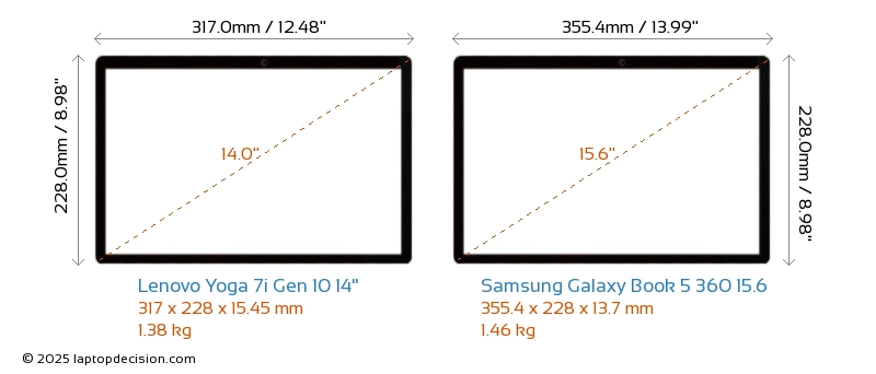 ThunderboltBoth Yoga 7i Gen 10 14" and Galaxy Book 5 360 15.6 are equipped with Thunderbolt 4 ports.