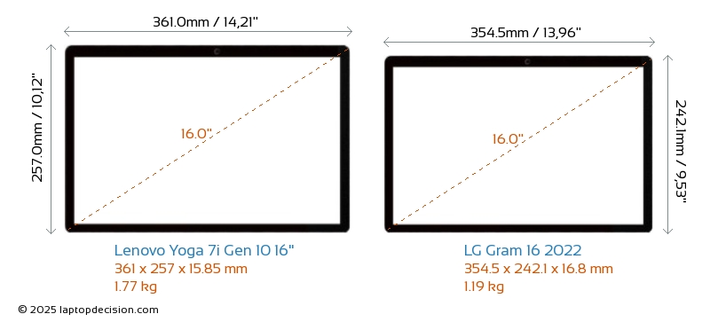 ThunderboltBoth Yoga 7i Gen 10 16" and Gram 16 2022 are equipped with Thunderbolt 4 ports.