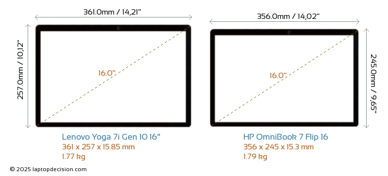 HDMIBoth Yoga 7i Gen 10 16" and OmniBook 7 Flip 16 feature an HDMI port. Yoga 7i Gen 10 16" offers 1x HDMI 1.4, while OmniBook 7 Flip 16 offers 1x HDMI 2.1.