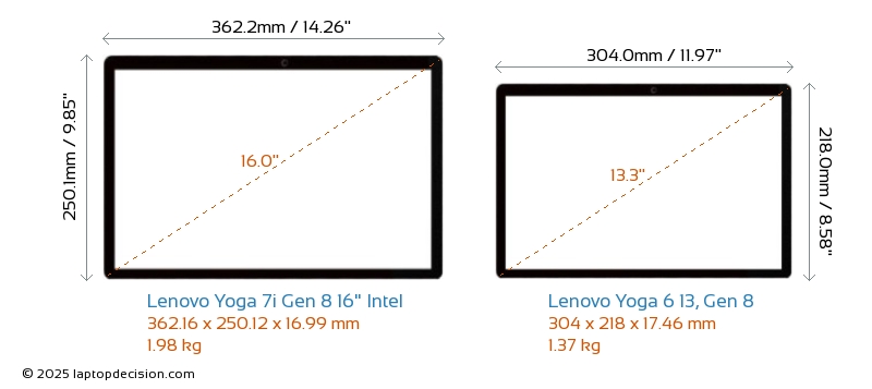 Wifi Yoga 7i Gen 8 16" Intel features a more advanced Wi-Fi standard v6E, providing faster and more reliable wireless connections compared to Yoga 6 13, Gen 8 (v6).