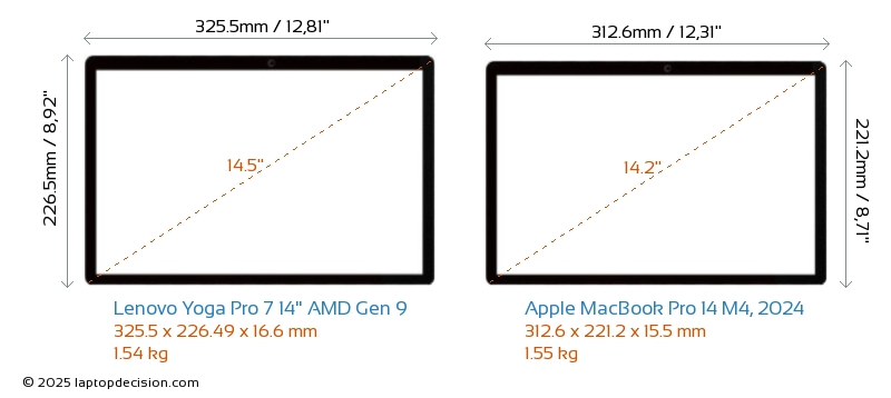 Thunderbolt MacBook Pro 14 M4, 2024 is equipped with Thunderbolt 4 port. Yoga Pro 7 14" AMD Gen 9 does not have Thunderbolt port.