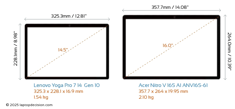 ThunderboltNeither Yoga Pro 7 14 Gen 10 nor Nitro V 16S AI ANV16S-61 has Thunderbolt port.