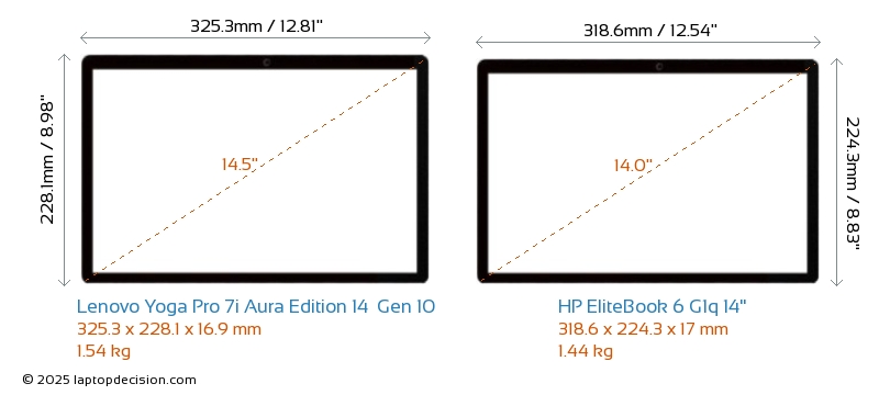 HDMIBoth Yoga Pro 7i Aura Edition 14 Gen 10 and EliteBook 6 G1q 14" feature an HDMI port (1x HDMI 2.1) for connecting to external monitors.