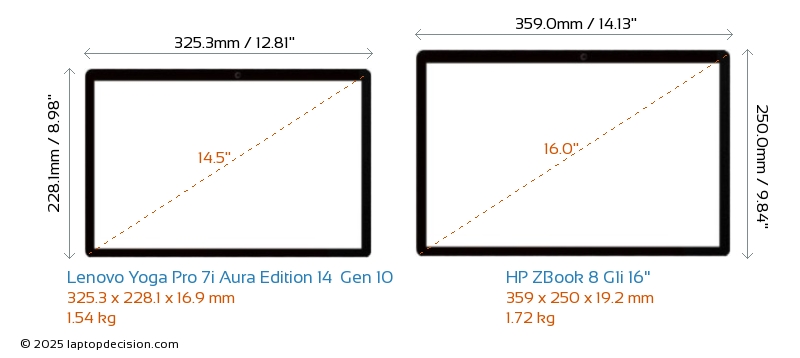 HDMIBoth Yoga Pro 7i Aura Edition 14 Gen 10 and ZBook 8 G1i 16" feature an HDMI port (1x HDMI 2.1) for connecting to external monitors.