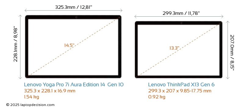 ThunderboltBoth Yoga Pro 7i Aura Edition 14 Gen 10 and ThinkPad X13 Gen 6 are equipped with Thunderbolt 4 ports.