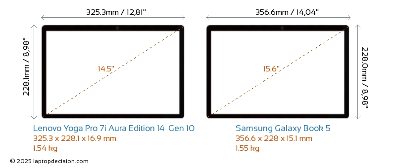 HDMIBoth Yoga Pro 7i Aura Edition 14 Gen 10 and Galaxy Book 5 feature an HDMI port. Yoga Pro 7i Aura Edition 14 Gen 10 offers 1x HDMI 2.1, while Galaxy Book 5 offers 1x HDMI 1.4.