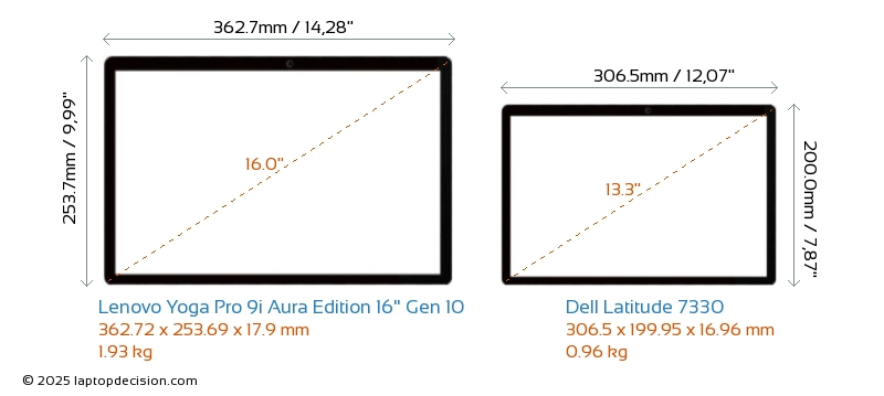 Audio JackBoth Yoga Pro 9i Aura Edition 16" Gen 10 and Latitude 7330 are equipped with a 3.5mm Audio Jack, providing seamless connection to headphones and speakers.