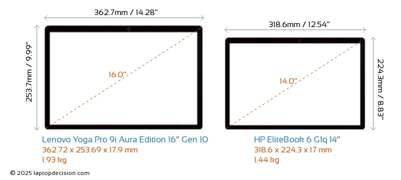 HDMIBoth Yoga Pro 9i Aura Edition 16" Gen 10 and EliteBook 6 G1q 14" feature an HDMI port (1x HDMI 2.1) for connecting to external monitors.