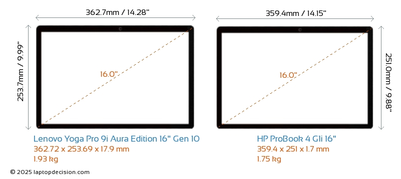 HDMIBoth Yoga Pro 9i Aura Edition 16" Gen 10 and ProBook 4 G1i 16" feature an HDMI port (1x HDMI 2.1) for connecting to external monitors.