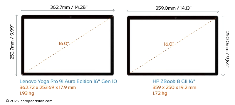 HDMIBoth Yoga Pro 9i Aura Edition 16" Gen 10 and ZBook 8 G1i 16" feature an HDMI port (1x HDMI 2.1) for connecting to external monitors.