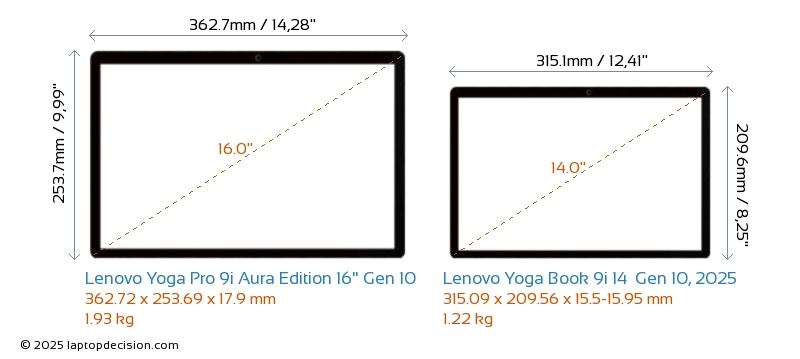 USB Yoga Pro 9i Aura Edition 16" Gen 10 is equipped with 2x USB 3.2 USB-A ports. Yoga Book 9i 14 Gen 10, 2025 does not have USB-A ports.Both Yoga Pro 9i Aura Edition 16" Gen 10 and Yoga Book 9i 14 Gen 10, 2025 have USB Type-C ports. Yoga Pro 9i Aura Edition 16" Gen 10 has 2x USB 3.2 USB Type-C ports, while Yoga Book 9i 14 Gen 10, 2025 has 3x USB 4.0 USB Type-C ports.