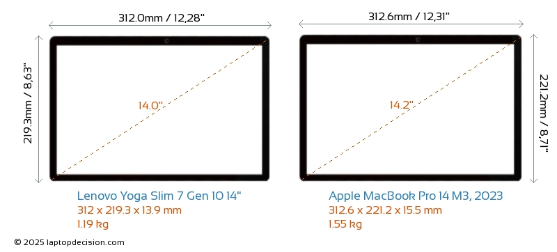 ThunderboltBoth Yoga Slim 7 Gen 10 14" and MacBook Pro 14 M3, 2023 are equipped with Thunderbolt 4 ports.
