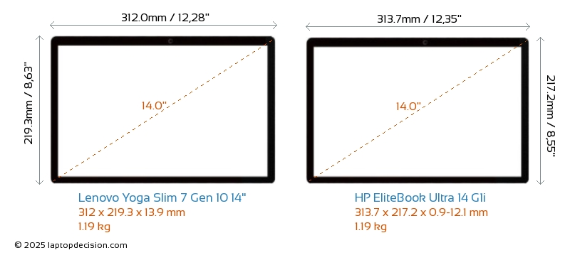 ThunderboltBoth Yoga Slim 7 Gen 10 14" and EliteBook Ultra 14 G1i are equipped with Thunderbolt 4 ports.