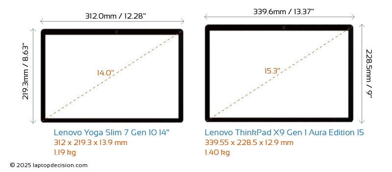 USBBoth Yoga Slim 7 Gen 10 14" and ThinkPad X9 Gen 1 Aura Edition 15 feature 1x USB 3.2 USB-A ports.Both Yoga Slim 7 Gen 10 14" and ThinkPad X9 Gen 1 Aura Edition 15 feature 2x USB 4.0 USB Type-C ports.