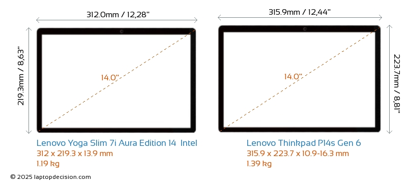 Audio JackBoth Yoga Slim 7i Aura Edition 14 Intel and Thinkpad P14s Gen 6 are equipped with a 3.5mm Audio Jack, providing seamless connection to headphones and speakers.
