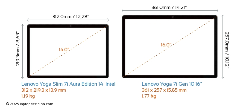 HDMIBoth Yoga Slim 7i Aura Edition 14 Intel and Yoga 7i Gen 10 16" feature an HDMI port. Yoga Slim 7i Aura Edition 14 Intel offers 1x HDMI 2.1, while Yoga 7i Gen 10 16" offers 1x HDMI 1.4.
