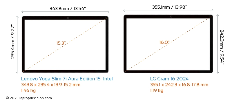 Wifi Yoga Slim 7i Aura Edition 15 Intel features a more advanced Wi-Fi standard v7, providing faster and more reliable wireless connections compared to Gram 16 2024 (v6E).