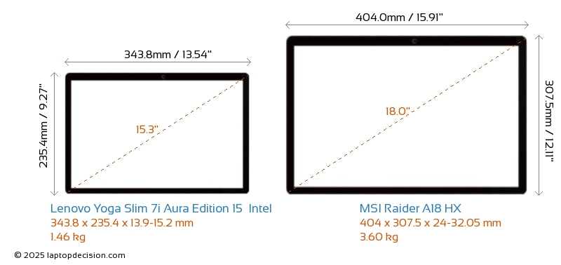 HDMIBoth Yoga Slim 7i Aura Edition 15 Intel and Raider A18 HX feature an HDMI port (1x HDMI 2.1) for connecting to external monitors.