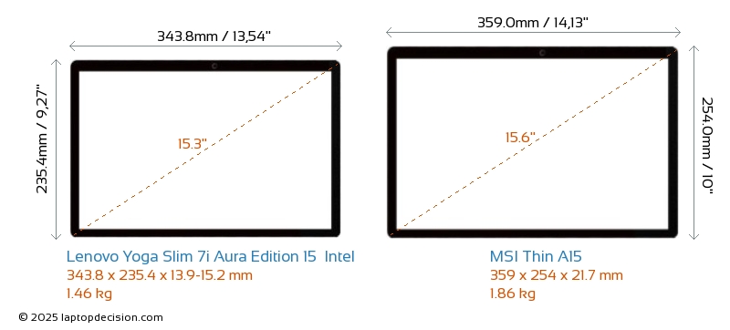 HDMIBoth Yoga Slim 7i Aura Edition 15 Intel and Thin A15 feature an HDMI port (1x HDMI 2.1) for connecting to external monitors.